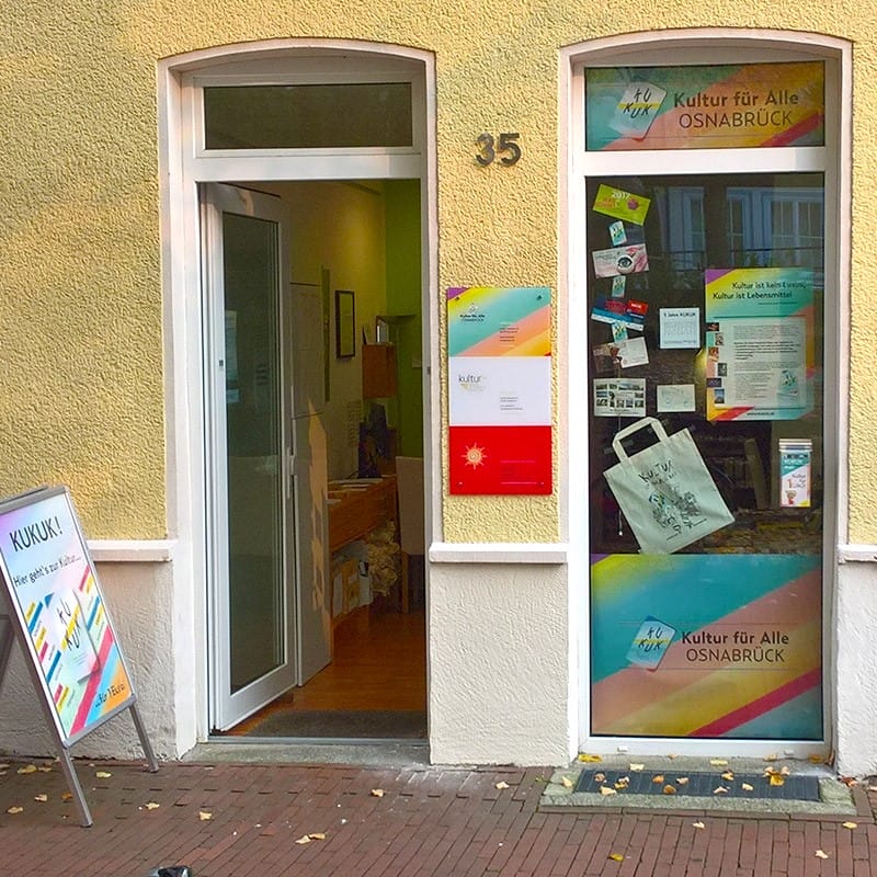Der Verein KAOS e.V. in Osnabrück ist eine gemeinnützige Organisation, die sich zum Ziel gesetzt hat, Menschen aus Stadt und Landkreis Osnabrück kulturelle Veranstaltungen zu ermöglichen, auch wenn sie über wenig Geld verfügen. Dafür hat der Verein die KUKUK (Kunst- und Kultur-Unterstützungs-Karte) ins Leben gerufen, mit der Interessierte Veranstaltungen für 1 Euro (Kinder für 50 Cent) besuchen können. Mit der Karte können auch ermäßigte Gebühren für Aktivitäten wie Malworkshops, Chöre oder Tanzkurse genutzt werden. Der Verein bietet zudem die Möglichkeit, sogenannte Kulturlotsen zu nutzen, die Menschen mit sprachlichen, gesundheitlichen oder anderen Hemmnissen bei ihrem Kulturbesuch unterstützen. Das Unternehmen befindet sich in der Altstadt von Osnabrück und bietet zusätzlich Angebote für Ausgehen & Erleben, Kunst & Kultur, Familien & Kinder sowie Kunstartikel an.