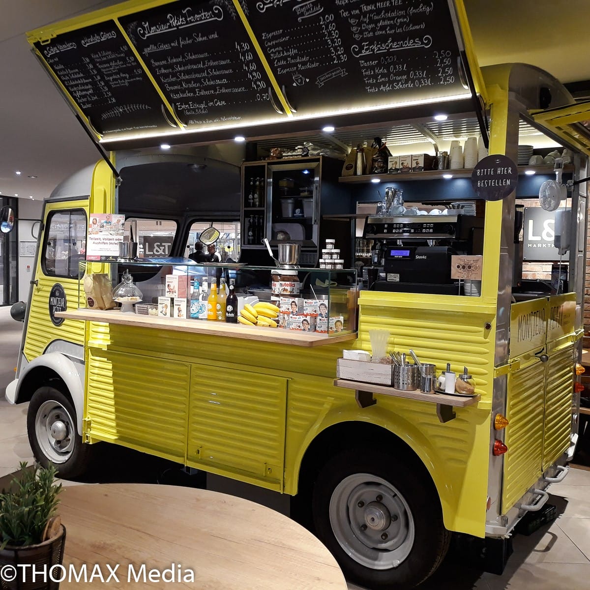 Monsieur Petit ist eine Markthalle, die eine große Auswahl an süßen und herzhaften Crêpes, sowie hochwertiger Caféspezialitäten von der lokalen Kaffeerösterei Barösta bietet. Wenn man dem leckeren Duft folgt, der einen zu dem kleinen gelben Citroen-Oldtimer führt, kann man sich auf ein einzigartiges Erlebnis freuen. Die Crêpes sind frisch und lecker, und die Kaffeespezialitäten sind ein Genuss. Monsieur Petit ist ein Ort, an dem man sich wohlfühlen und die französische Küche genießen kann. Es ist ein Ort, an dem man sich treffen und eine gute Zeit haben kann. Wenn Sie also nach einem Ort suchen, an dem Sie sich entspannen und die französische Küche genießen können, sind Sie bei uns gerne willkommen!