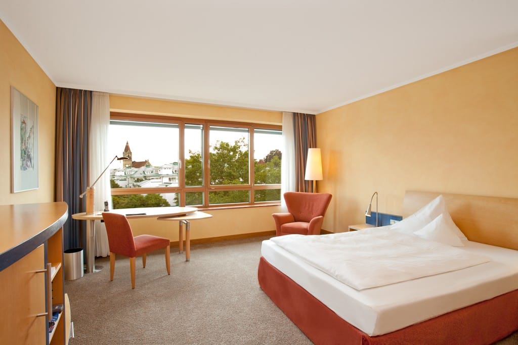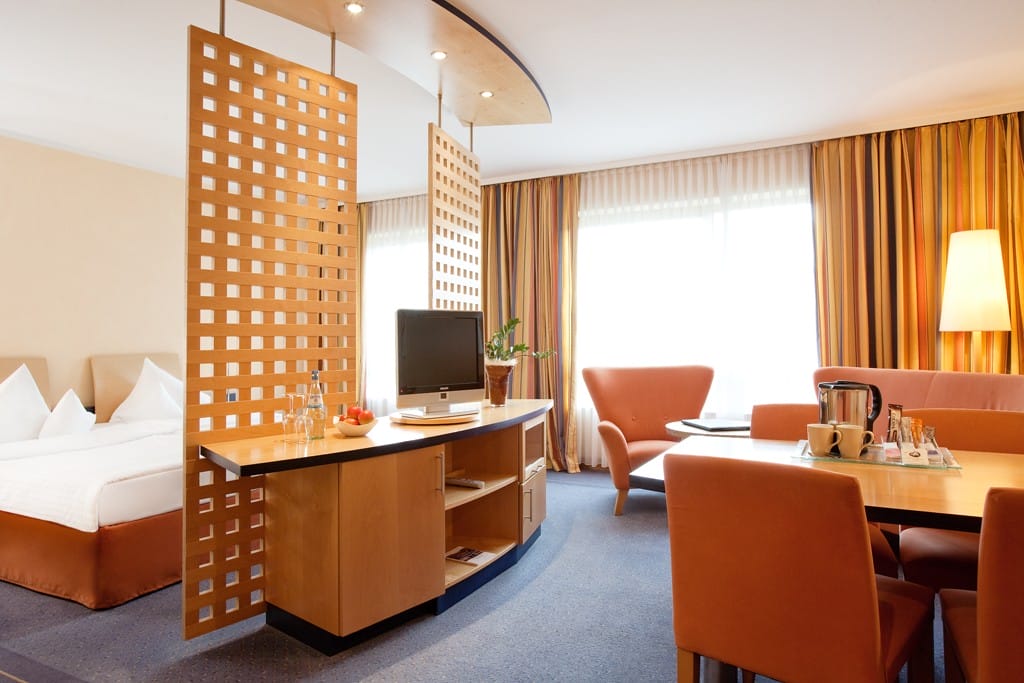 Im behaglichen Ambiente der 156 Zimmer und Suiten werden Sie sich auf Anhieb wohlfühlen. Während Ihres Aufenthaltes profitieren Sie von Annehmlichkeiten wie Flatscreen-TV, Schreibtisch, Safe, Minibar und Sitzecke. Das Highlight der Panorama-Suite ist der schöne Blick über die Dächer Osnabrücks.